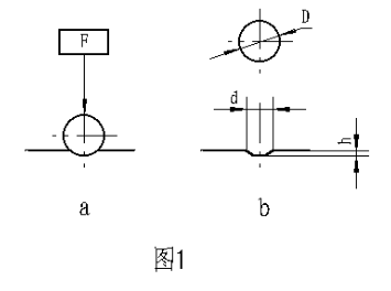 金属布氏硬度试验系采用一定直径硬质合金球,以规定试验力压入被测材料表面(图1a)按规定保持时间后,卸除试验力,(图1b)测量试样表面的压痕直径,以计算出布氏硬度,并以下式计算之: